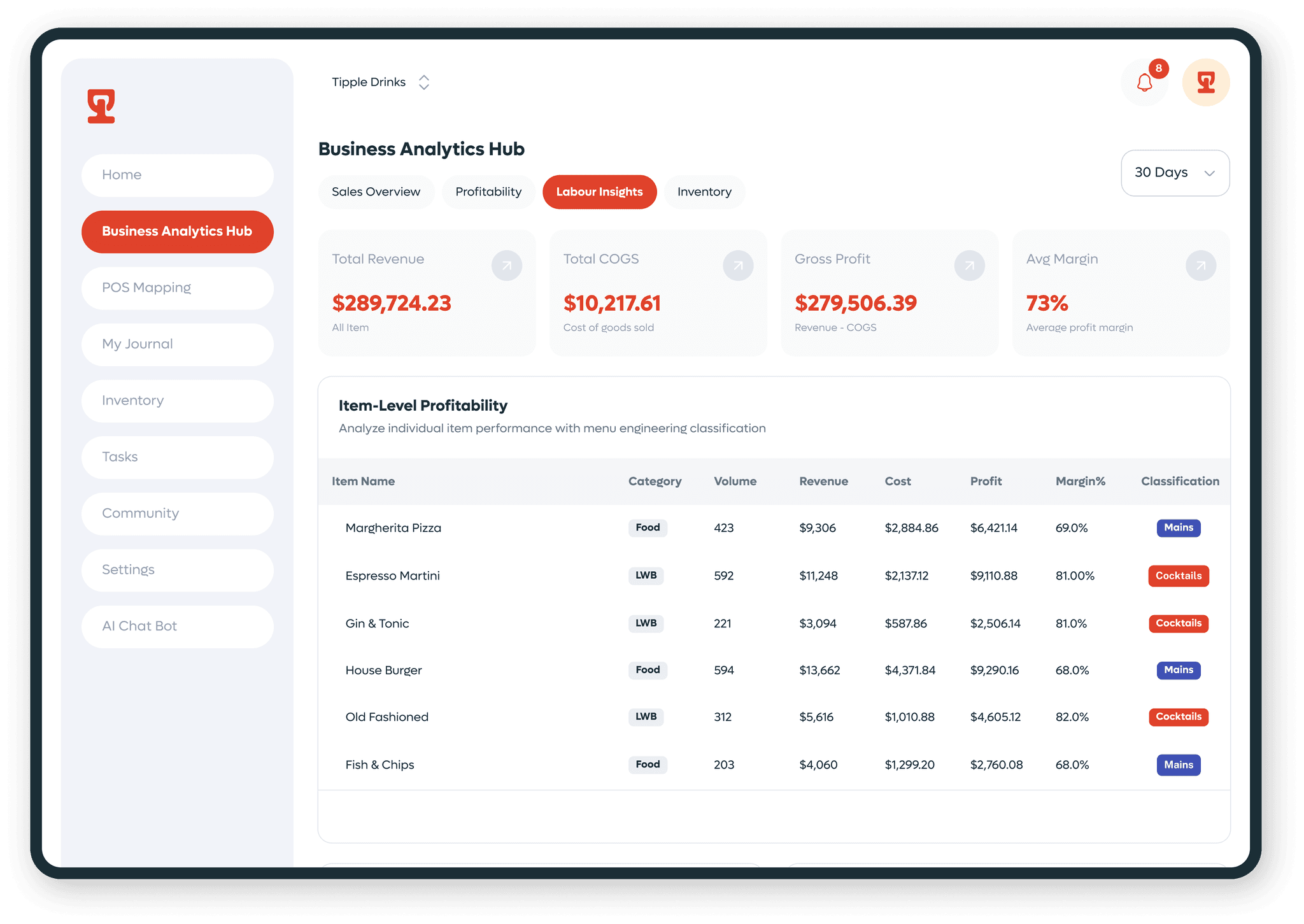 Tipple turns your bar into a predictable, data-driven operation — without changing how you work.